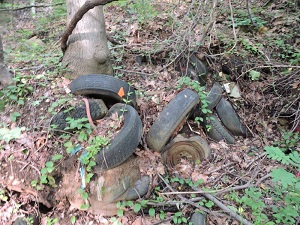 and counted over 200 waste tires along the embankment, in the floodplain and