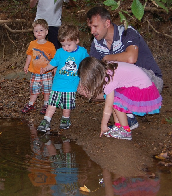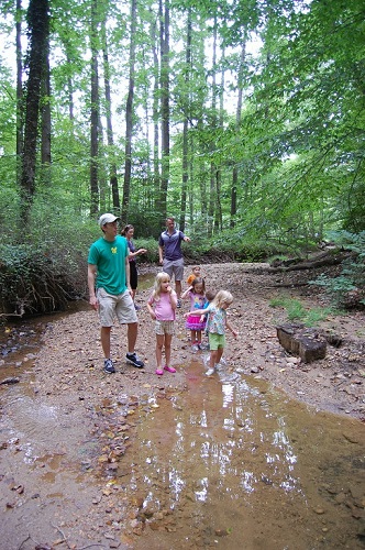 Friends of Accotink Creek joined a few friends and neighbors of the Long Branch central tributary for a morning nature walk through Rutherford Park, discovering native and invasive plants, insects, erosion, and lots of tiny fish.