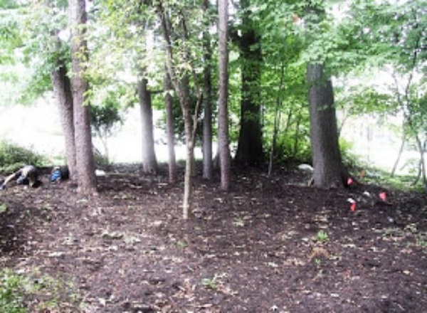 When my wife and I moved to The Chapel Hill Neighborhood in Annandale in 2011, I found a stairway leading into the woods at the end of Beaverdam Court. There were park signs under overgrown trees and shrubs that were rotten and falling down yet marked the area as a Fairfax County Park. Neighbors bordering the park had been dumping yard debris at the trail head and most of the trail had been blocked by numerous fallen trees. The neighbor at the Tarheel Way trail head had been cutting the field at the trailhead and claiming the park as a private "green space" behind his property in the name of neighborhood safety. The large red and yellow wooden park sign at the trailhead was covered by a tree branch which was conveniently left in place to hide the sign and keep park patrons from discovering the area was indeed a Fairfax County Park. Numerous calls and emails to the Park Authority were met with the answer that there were no funds for the park. Photos sent via email to numerous recipients motivated the Park Authority to replace the two signs over a two year period. Fall 2013, I met with a park manager who indicated he would try to do something but no promises. Finally, June 2014 Fairfax County Park Authority, with prompting from the Braddock Supervisor, brush cut the trail between Beaverdam Court and Tarheel Way. The trail between Tarheel Way and Glen Park Road remains closed. The park maintenance supervisor stated he would only open it if neighbors on the Glen Park Road side insisted. Most of those neighbors likely don't know the park exists as there are no signs on Glen Park indicating it is a trailhead and it is overgrown, however one man on that side has told me he has been trying to get it reopened for years and will try once again. Oak Hill Park is named for historic Oak Hill Mansion, separated by Wakefield Chapel Road, but less than half a mile apart. There is a home in our neighborhood that is rumored to have been the slave quarters for the mansion and there is an unmarked cemetery up the hill from the home and currently between two homes on Hogans Lake Place in front of Oak Hill Park. The cemetery is marked on the park Master Plan by an "X". Glen Erickson Bell - August 8, 2014