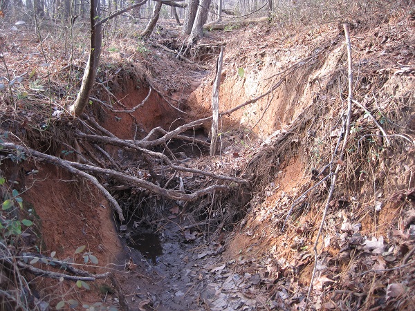 Gullies continue to grow while funds are misdirected to erosion-aggravating asphalt.