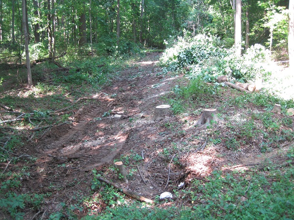 Another questionable trail paving project puts yet more of the parkland in the Accotink Creek watershed permanently under asphalt. The pleasant community pathway that meandered through Pine Ridge Park (near Fairfax Hospital) was widened and the habitat beside it bulldozed away. The paved trail and the constant mowing it will require will provide an avenue for invasive alien plant species to colonize. The ability of the Fairfax County Park Authority to find money for ever more pavement while its budget is cut year after year and other needs go unmet is remarkable. Meanwhile other county agencies are spending tens of millions trying to counter the erosion and stream degradation caused by excess pavement.