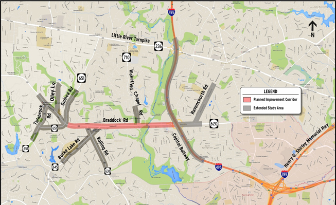 Date: August 3, 2020, Braddock Road Public Online Meeting Welcome news - the realignment of Danbury Forest Drive through the Long Branch central floodplain has been dropped. An attack of environmental remorse? Alas no- the motive is strictly financial. We'll take it anyway.