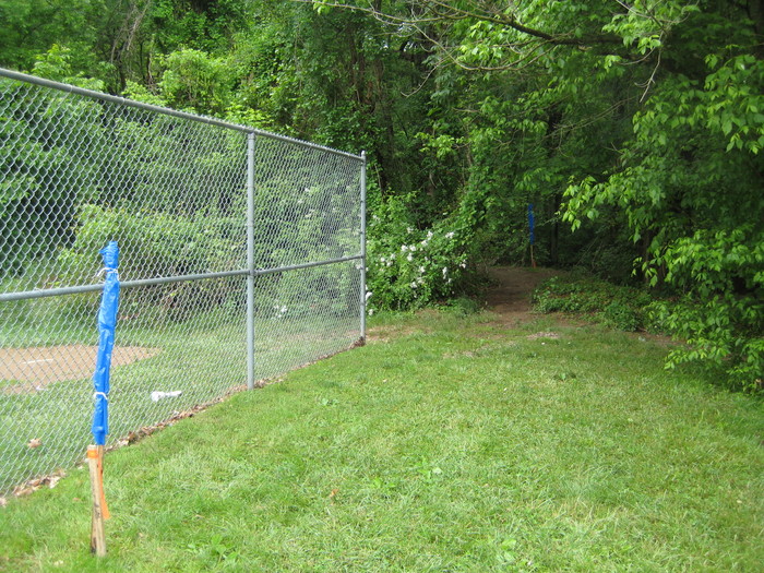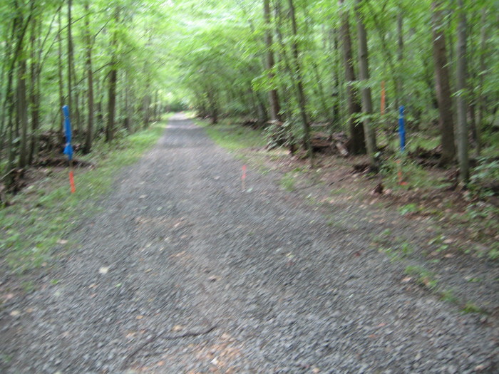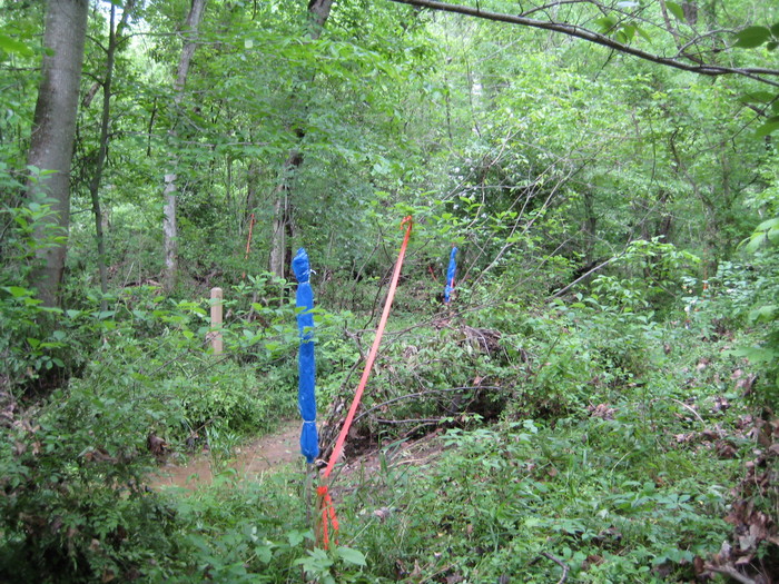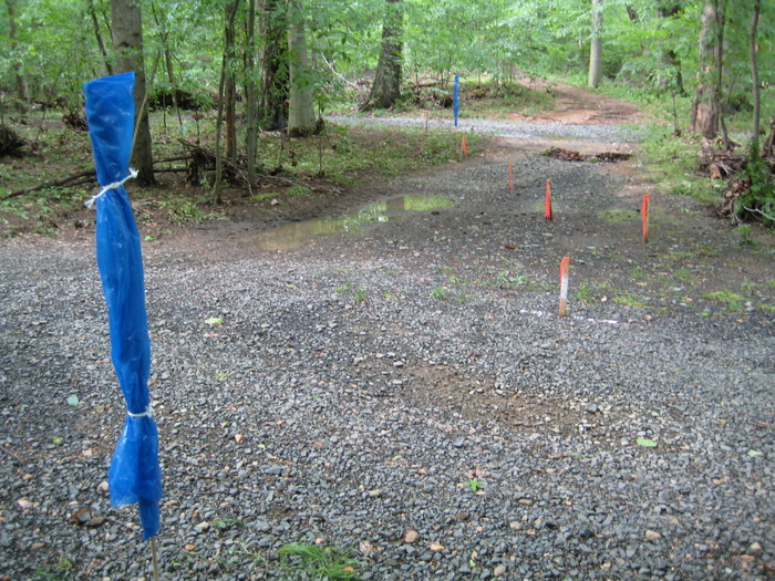 May, 2008: Confusing, too many stakes at Lake Accotink Park office spur trail