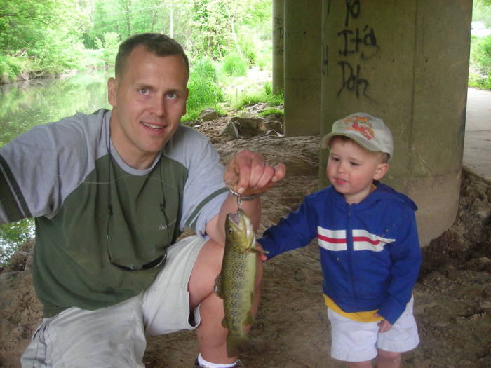 What a great day for introducing a three-year old to trout fishing at Accotink Creek!