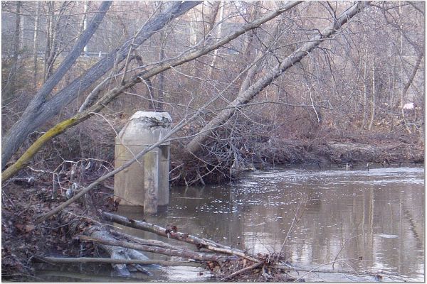 Abandoned roadbed below Fullerton Road is an obstacle to fish migration.