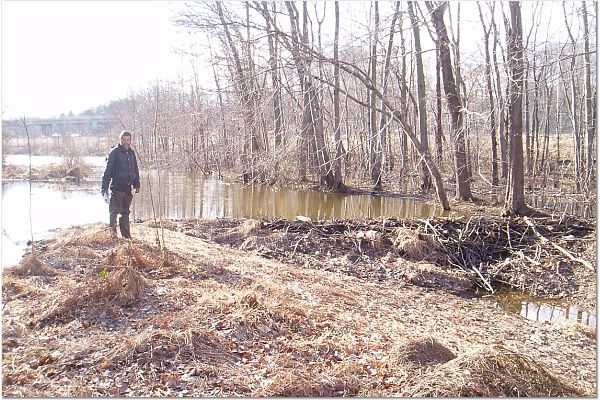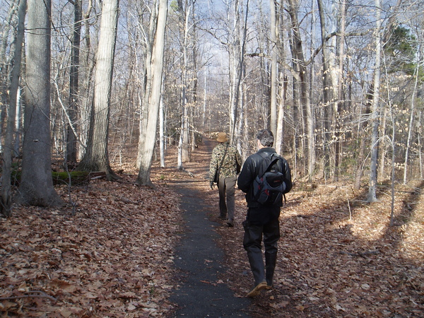 Location: Lower Accotink Creek, walking upstream from the northern boundary of Fort Belvoir at Telegraph Road, over four miles to the southern boundary of the Engineer Proving Ground, just north of Fullerton Road. Observations: Beaver dams, red-tailed hawks, pileated woodpeckers, the fresh tracks of deer, fox, and raccoon within earshot of the drone of I-95 traffic give hope for the health of the neglected, overlooked stretches of Accotink Creek. Yet, alongside these are the clear signs of ill health - mounds of trash, undercut stream banks, silt-laden water, toppled trees caused by excessive runoff, and innumerable invasive multiflora rose bushes and vines. Conditions on this stretch of Accotink Creek range from a dumping grounds to "no-worse-than-usual" for a stream that is quickly filled to the banks with storm runoff. The Friends of Accotink Creek expect to undertake some of their initial cleanup efforts at sites found here. Duane Murphy and Philip Latasa were joined by Clair Garman, the webmaster for Friends of Accotink Creek and its sister group in Maryland, Friends of Sligo Creek www.fosc.org.