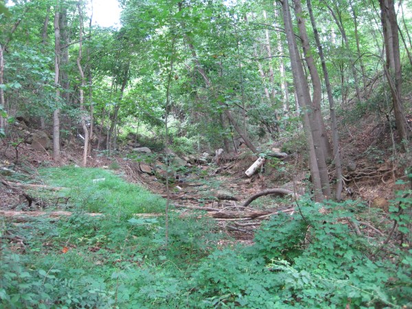 Deep ditch drains water from Industrial park to Accotink Creek.