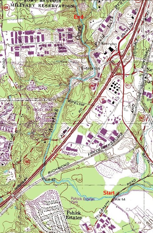 December, 2015, Walked upstream along unnamed tributary that enters Accotink Creek below Fullerton Road