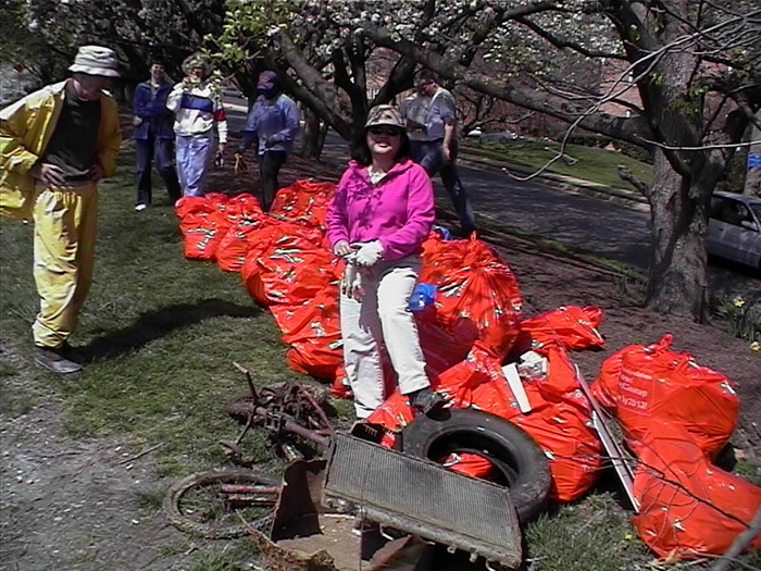 Eleven volunteers assisted in the cleanup: Jack Buckley (Friends of Accotink Creek and SHA Site Coordinator), Lisa Lofton, Eleanor Hahn, Chris Daubert, Karen Cook,Pam Miller, Julie Varron, Robert Babingon Smith, Tom Easton, Ann Oeland and her son Danny. The group collected 37 bags of trash - bottles, cans, plastic bags, Styrofoam, assorted plastic, etc. In addition they picked up two tires, an hibachi, a bicycle and a car radiator