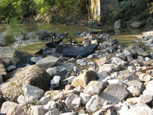 Chunk of new trail pavement washed into Accotink Creek.