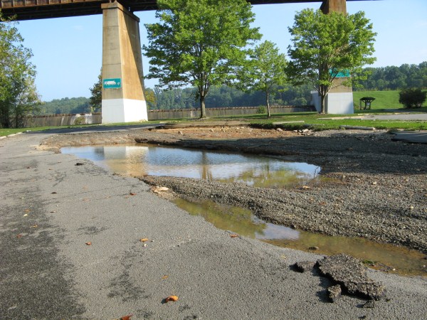 Lake Accotink Park parking lot washed out by flooding - again.