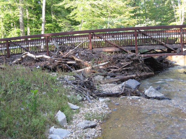 Logjam against Cross County Trail bridge
