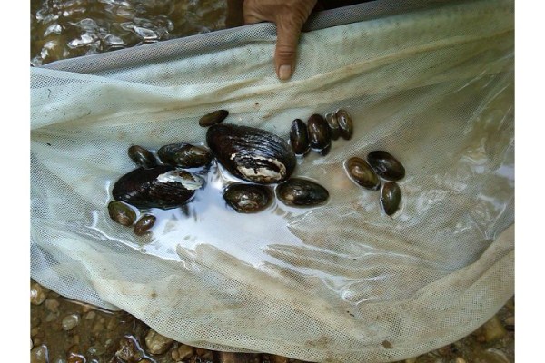 Rescued mussels along Accotink Creek