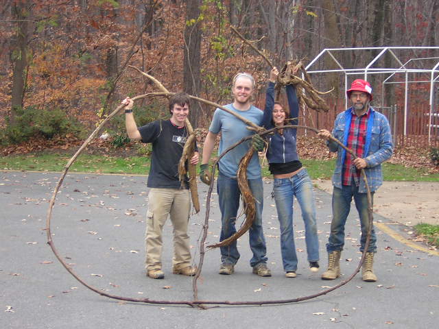 Volunteers Josh Mausolf, Ben Steenblik, Meagan D'Annibale, and Philip Latasa display extracted Kudzu tubers and vines.