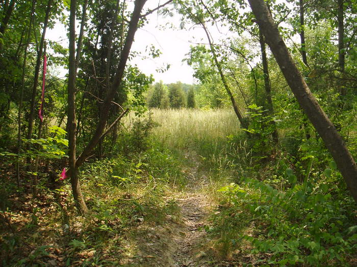 The red tape marks the edge of the planned soccer field that will totally cover the meadow.