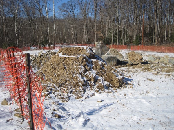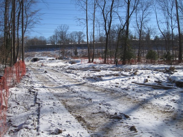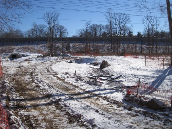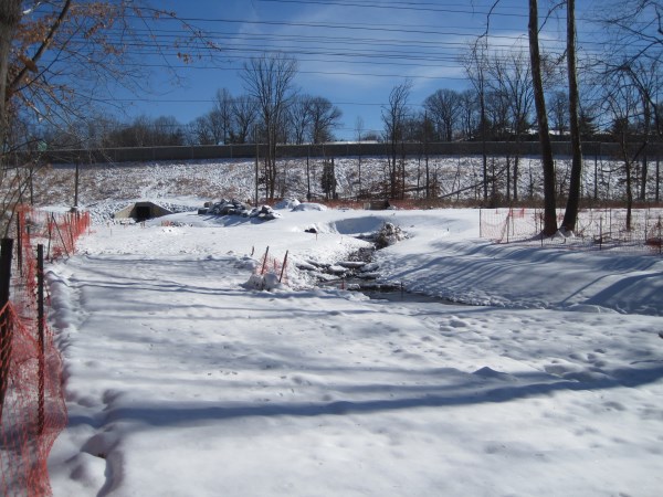 Berm allows equipment to work at the mouth of Wakefield Run. Wakefield Run, January 29, 2014