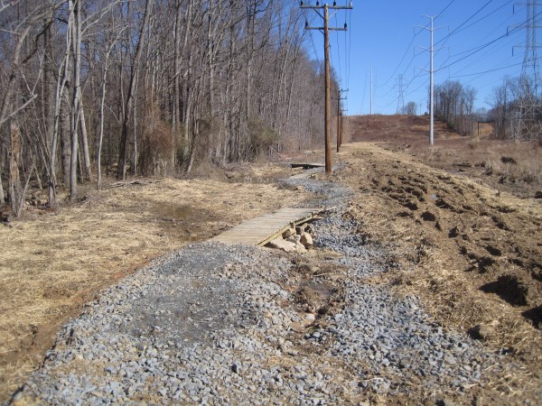 Rerouted/reconstructed mountain bike trail Wakefield Run, March 19, 2014